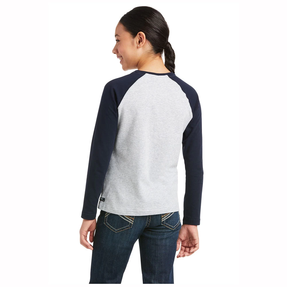 Ariat Youth Heart of My Heart Long Sleeve T-Shirt – Navy/Heather Grey