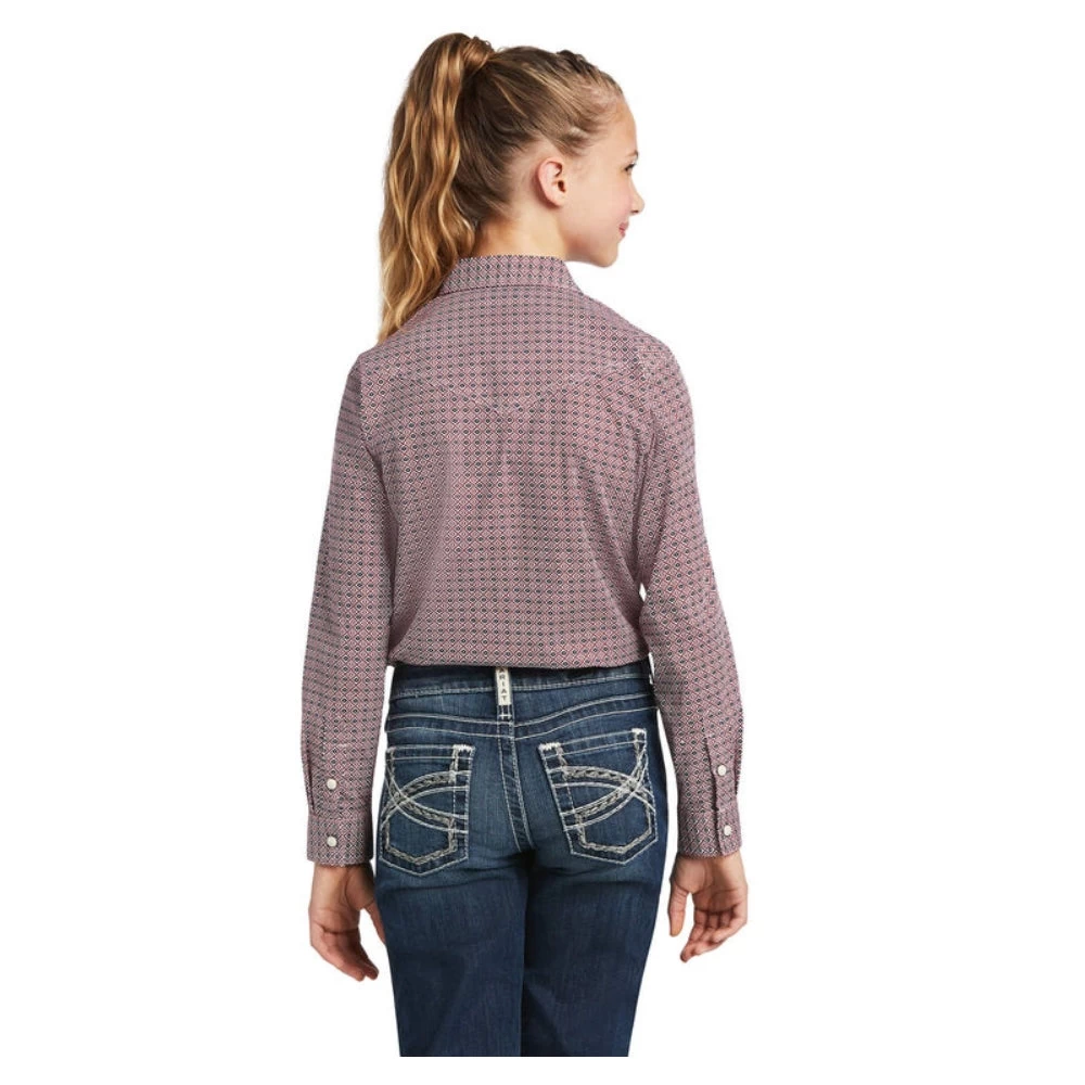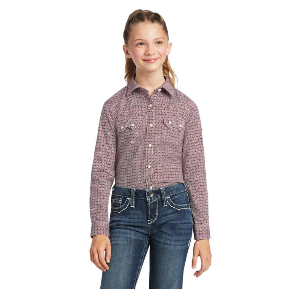 Every cowgirl needs a good button-up. With its cool, mosaic-like pattern, this one has almost as much personality as she does.