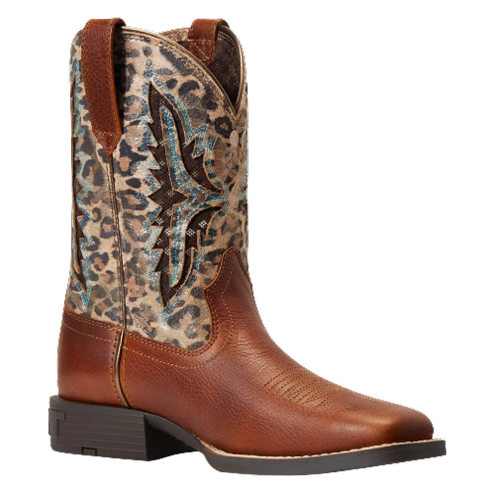 Ariat Youth Koel Venttek Square Toe Western Boot – Spiced Cider / Metallic Leopard