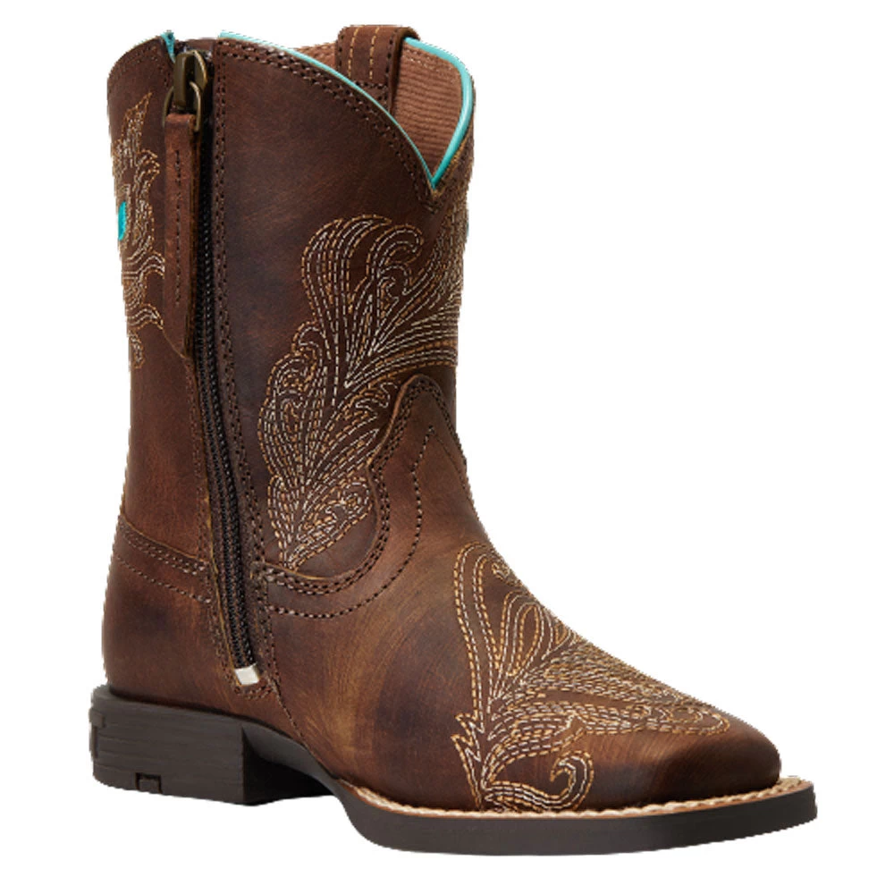 Ariat’s Bright Eyes II Western boot offers that just right support and cushioning. Designed specifically with kiddos in mind, our Easy Fit system makes it easier to get boots on/off and molds to their foot.