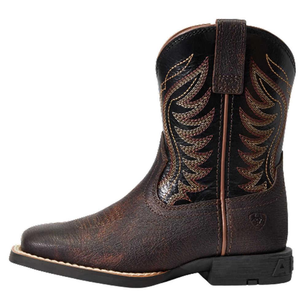 Ariat Children’s Amos Square Toe Western Boot – Hand Stained Red-Brown & Black