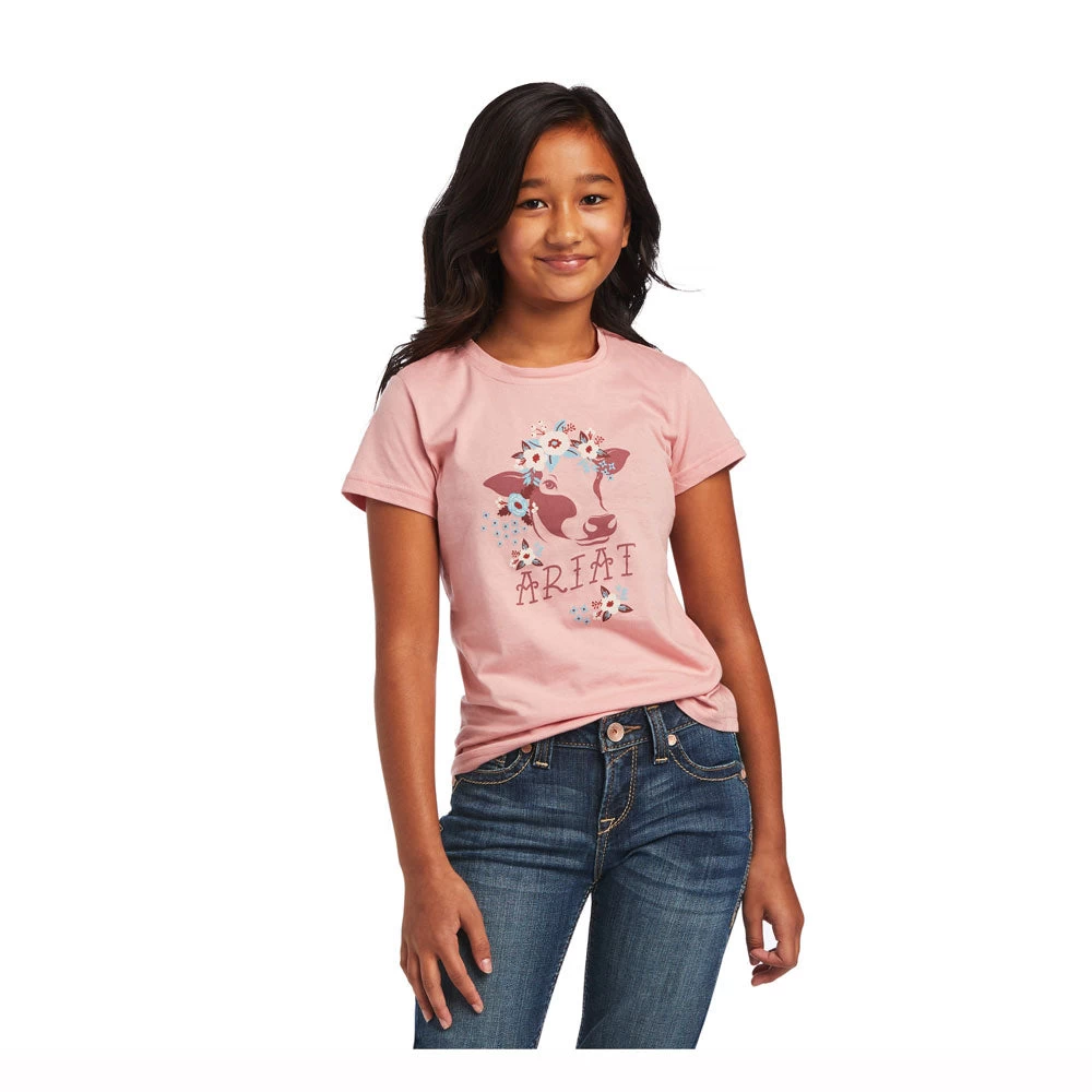Ariat Girl’s REAL Moo-Chacha Short Sleeve Tee – Bridal Rose