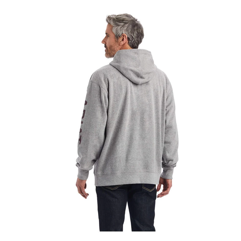 Ariat Men’s Logo Hoodie in Heather Grey. Ultra soft and supremely comfortable, these hoodies are best-sellers for a reason. This one comes with a logo graphic down the sleeve.