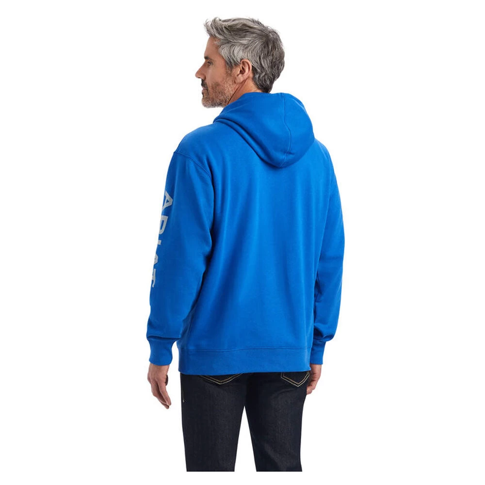 Ariat Men’s Logo Hoodie in Cobalt.  Ultra soft and supremely comfortable, these hoodies are best-sellers for a reason. This one comes with a logo graphic down the sleeve.