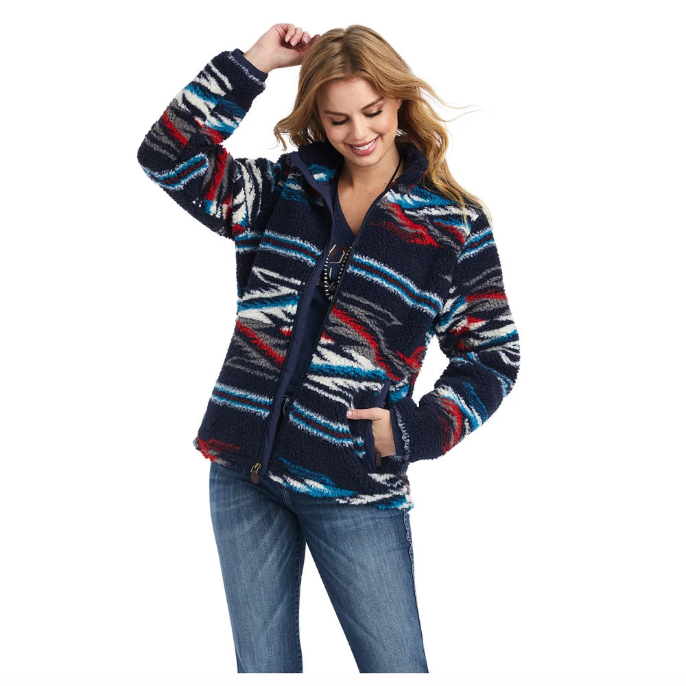 Ariat Women’s Chimayo Fleece Jacket in Chimayo Jacquard Sherpa. This soft Sherpa fleece jacket is so cozy you won’t want to take it off.