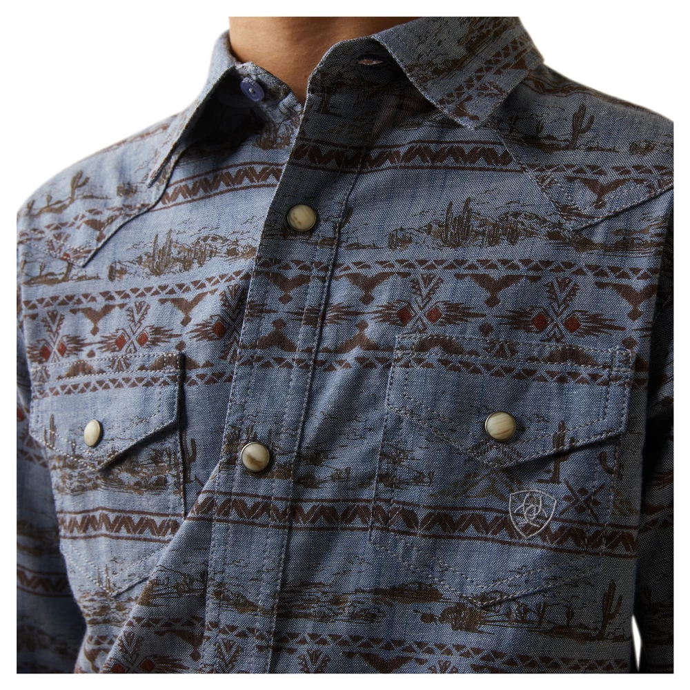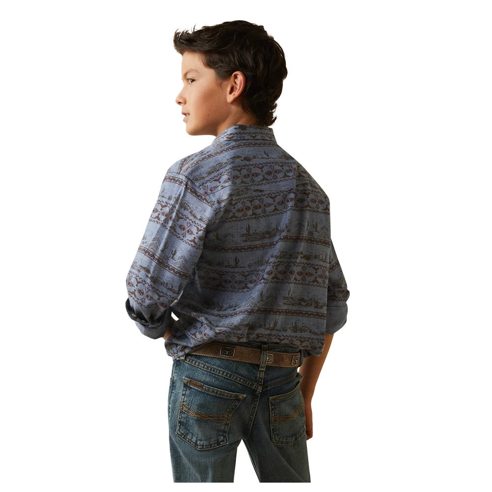 Ariat Boys Haddington Retro Long Sleeve Snap Shirt in Dusk Green