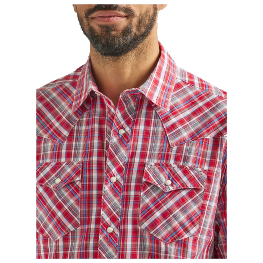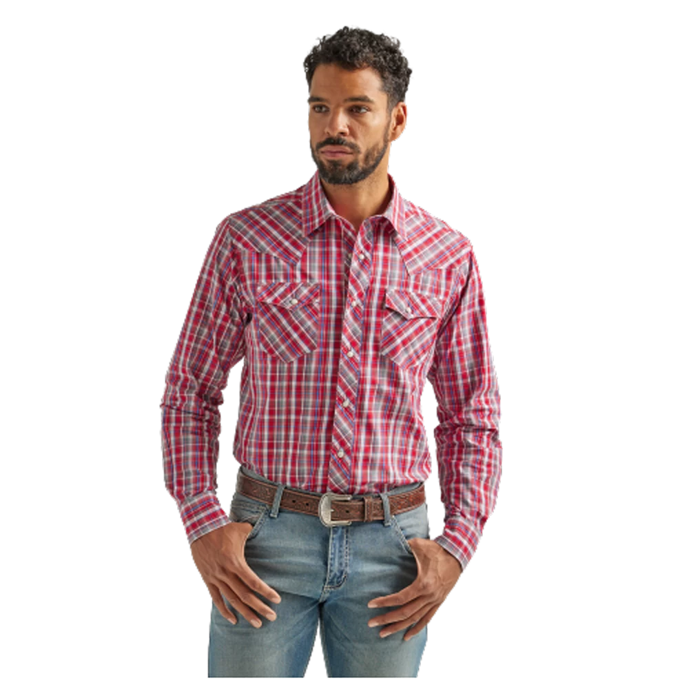 Wrangler Men’s Wrinkle Resist Long Sleeve Western Snap Shirt in Red Plaid