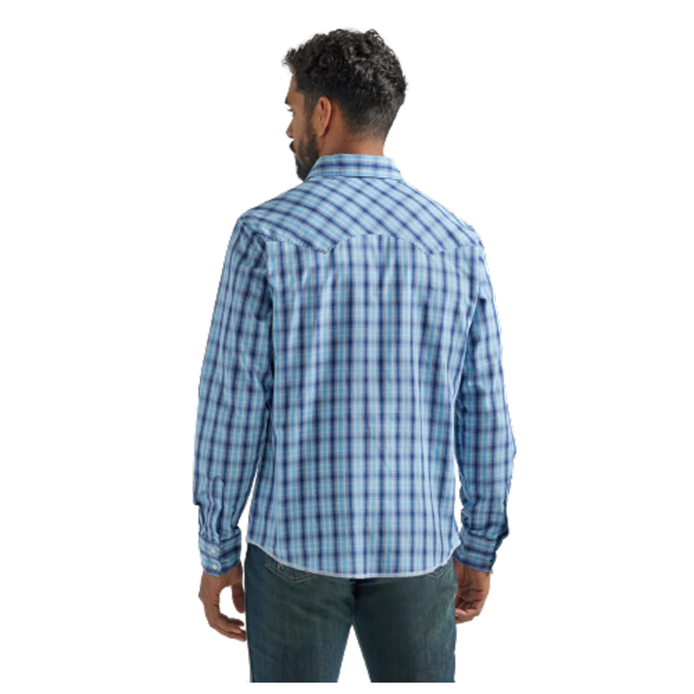 Wrangler Men’s Wrinkle Resist Long Sleeve Western Snap Shirt in Blue Plaid