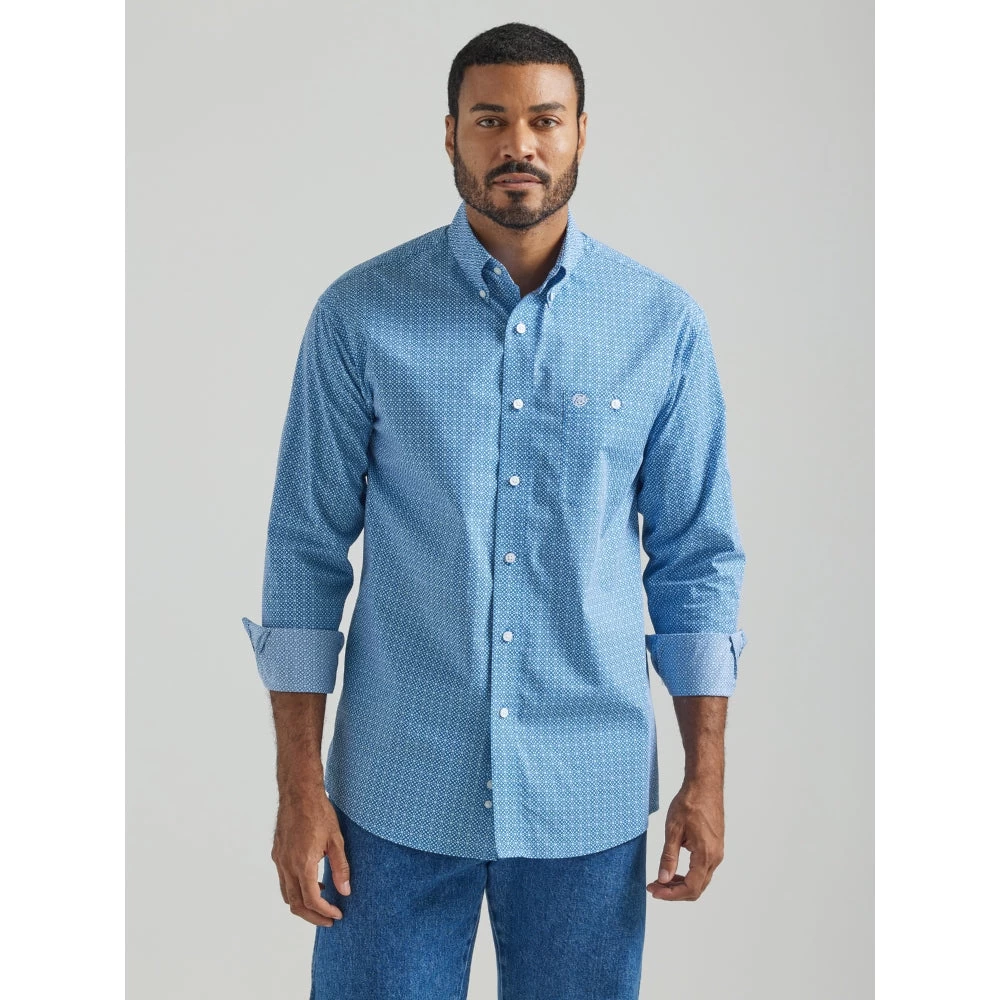 Wrangler Men’s Long Sleeve Western Shirt – Blue