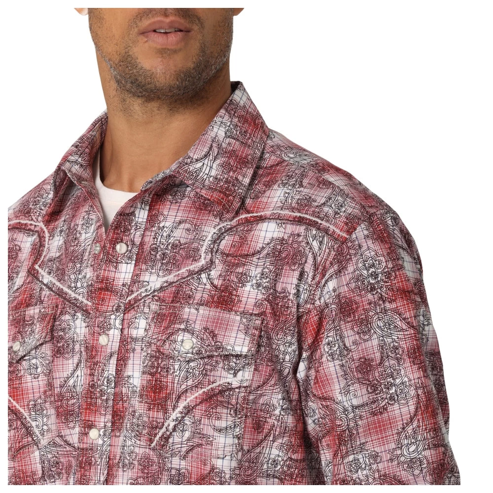 Wrangler Rock47 Men’s Long Sleeve Western Shirt – Red