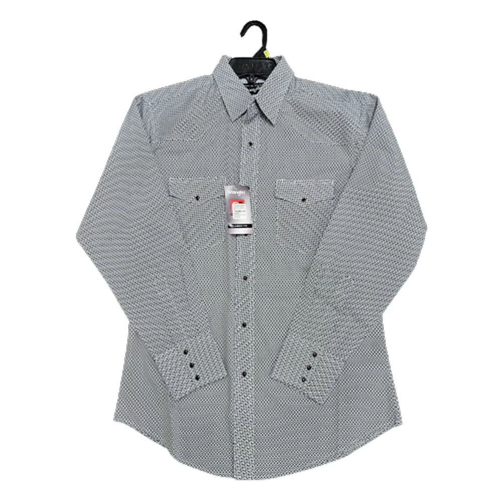 Wrangler Men’s Silver Edition Long Sleeve Western Snap Shirt in Black Print