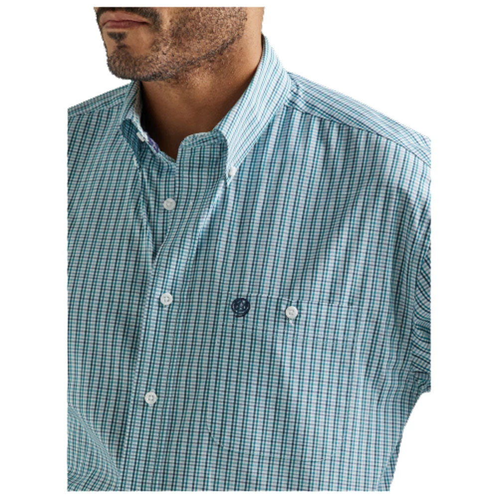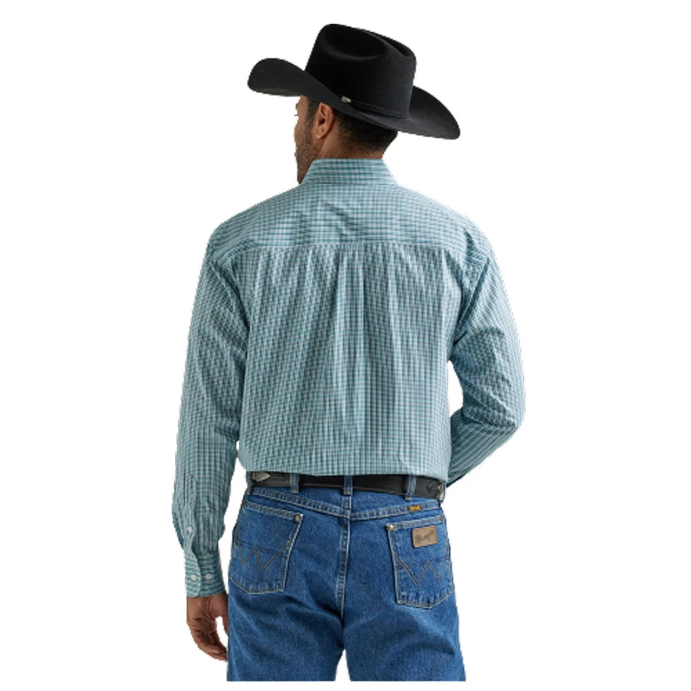 Wrangler George Strait Men’s Long Sleeve Buttondown in Aqua Plaid
