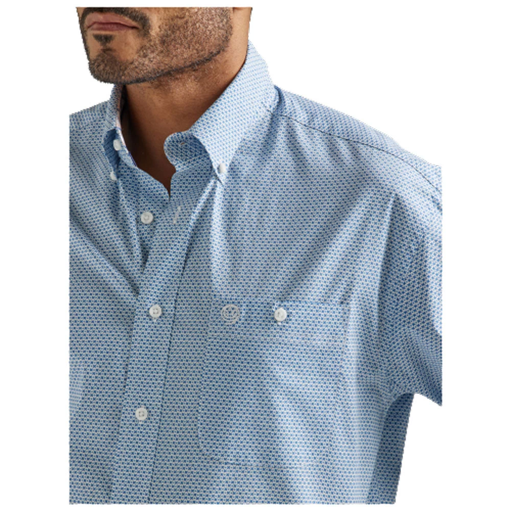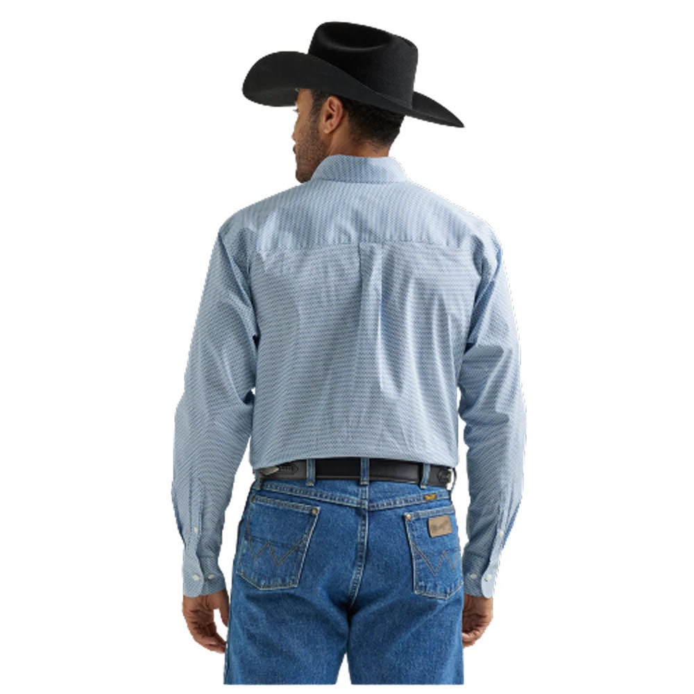 Wrangler George Strait Men’s One Pocket Long Sleeve Buttondown Western Shirt in Blue Print