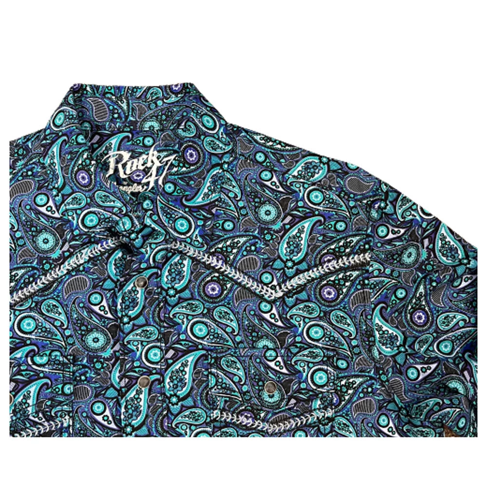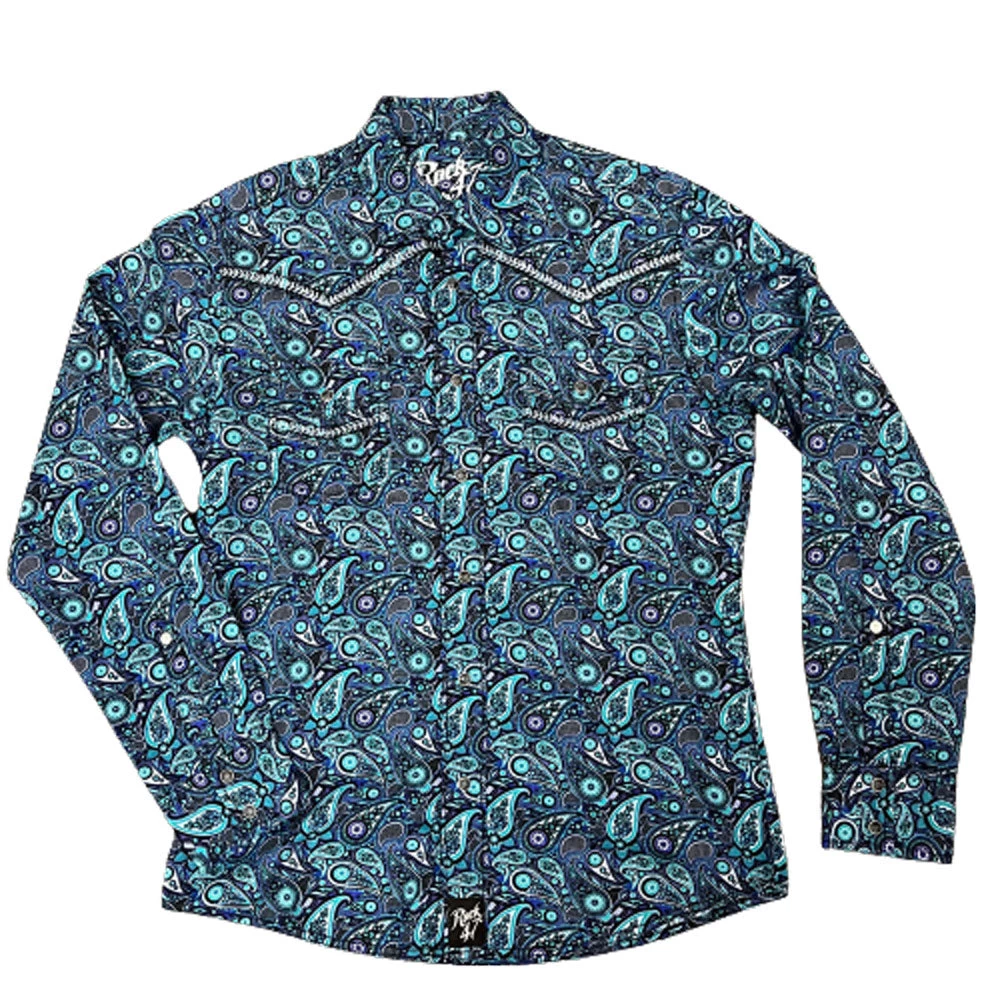 Wrangler Men’s Rock 47 Long Sleeve Western Shirt Blue Paisley