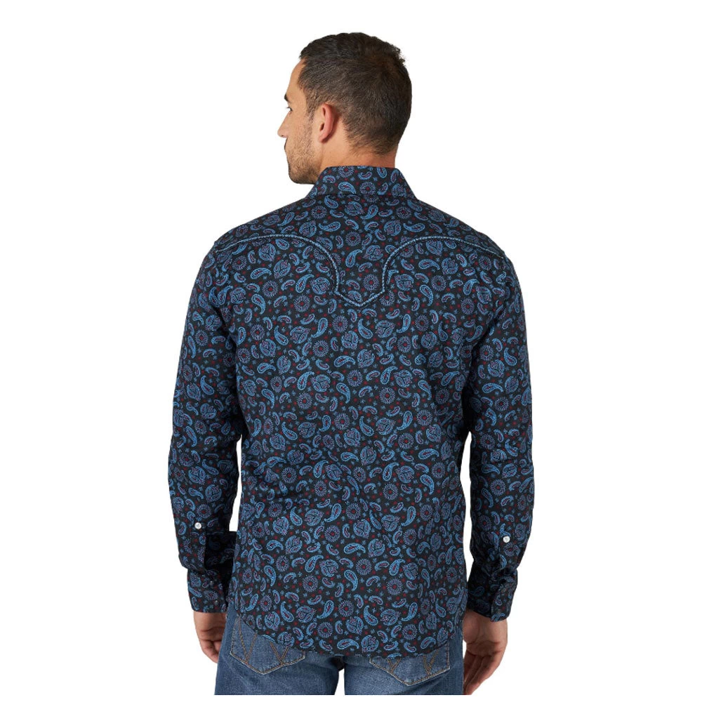 2318983 Wrangler Men’s George Straight One Pocket Long Sleeve Button Western Shirt- Green Paisley
