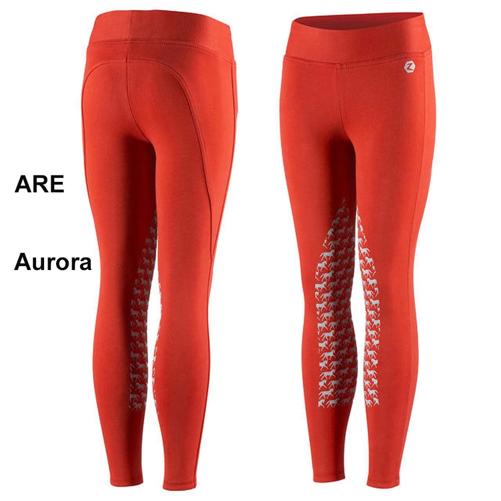 A fresh pair of knitted tights for junior riders come with a innovative horse print silicone grip seat.