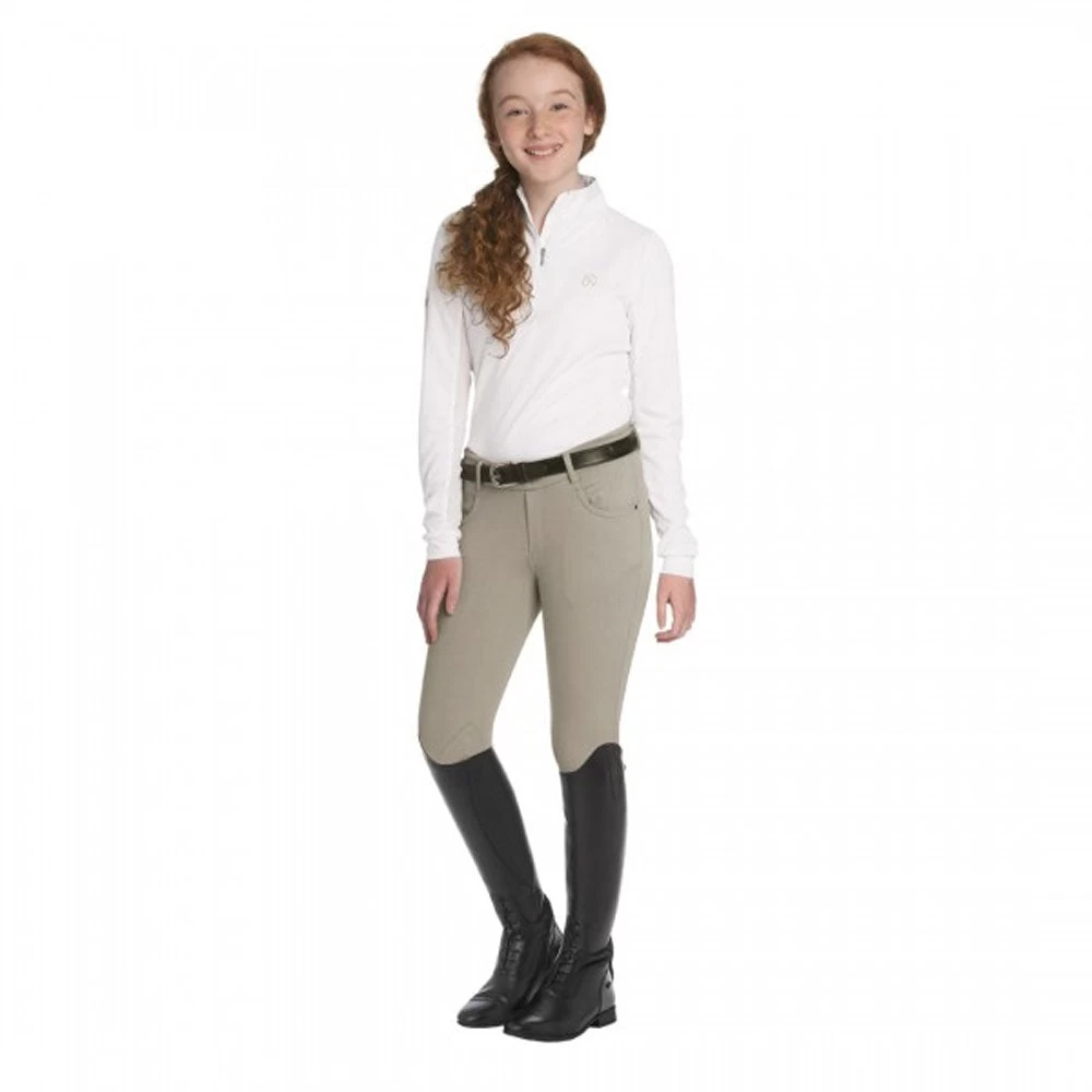 - Front jean styling makes this cute euroseat breech perfect for casual riding wear