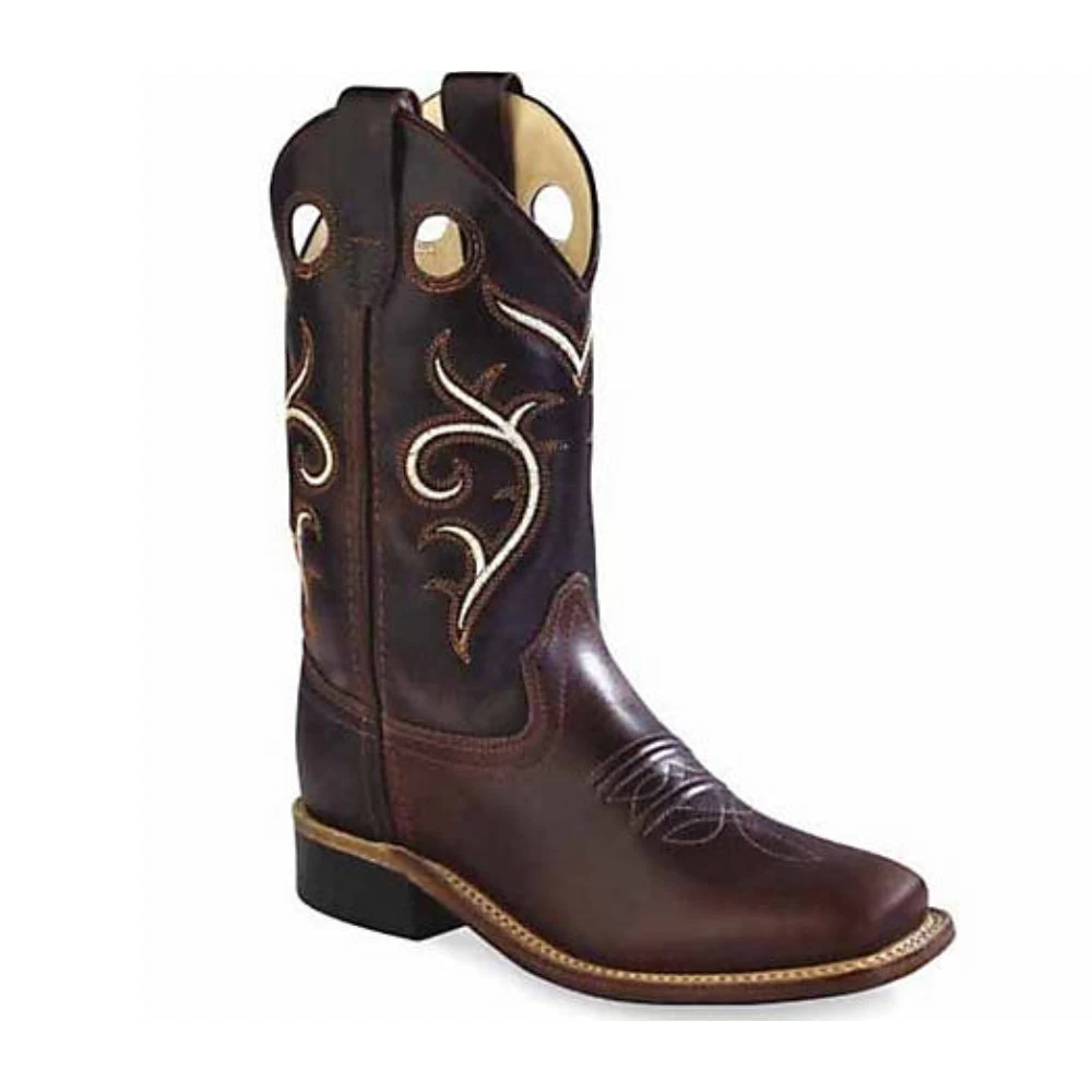 Keep him comfortable in these Old West Boys’ 9 in. Western Boots. The white double-row welt stitch and natural leather welt in the children’s western boots withstand use for long-lasting durability.Â