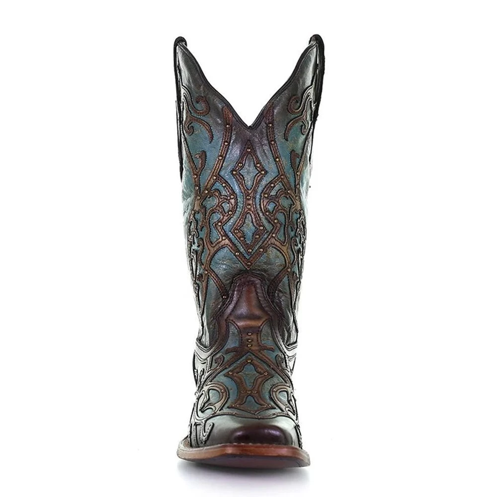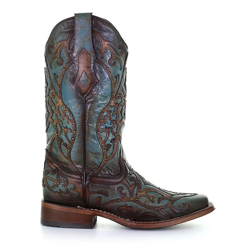 Corral Women’s Brown with Turquoise Overlay Square Toe Western Boots