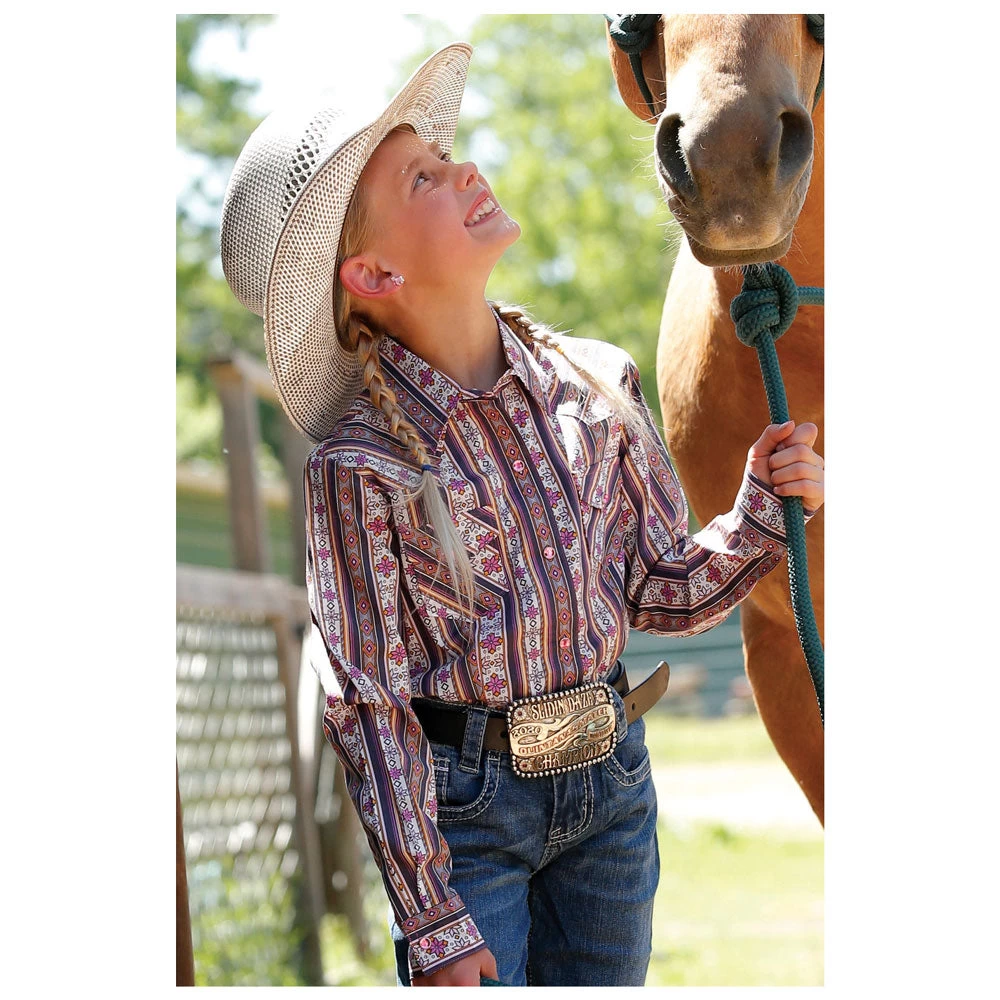 Cruel Girl Children’s Purple and Pink Striped Print Snap Western Shirt