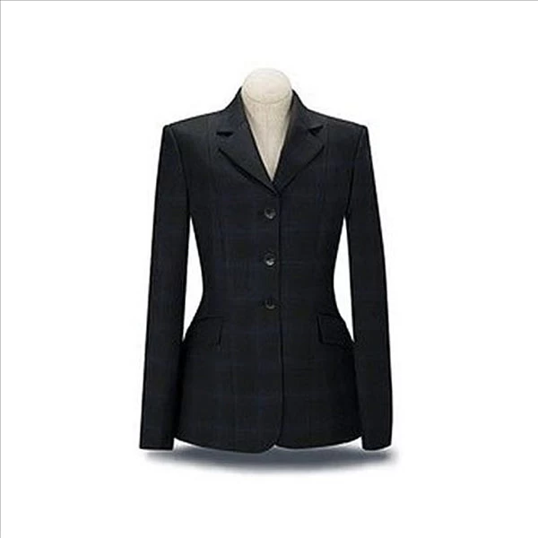Stylish black plaid show coat with dark blue overlay plaid from RJ Classics.