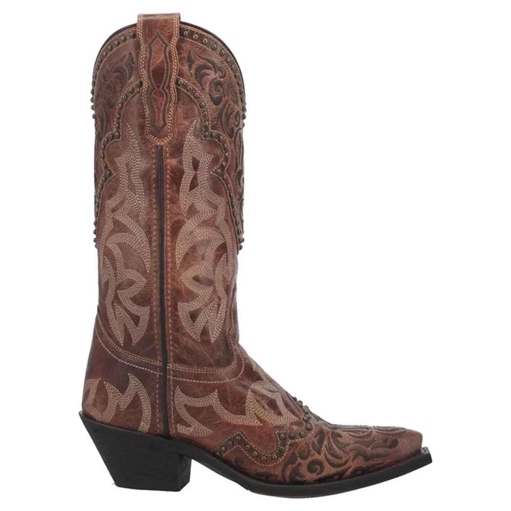 Laredo Ladies Braylynn Snip Toe Western Boot Brown with Embroidery and Studs
