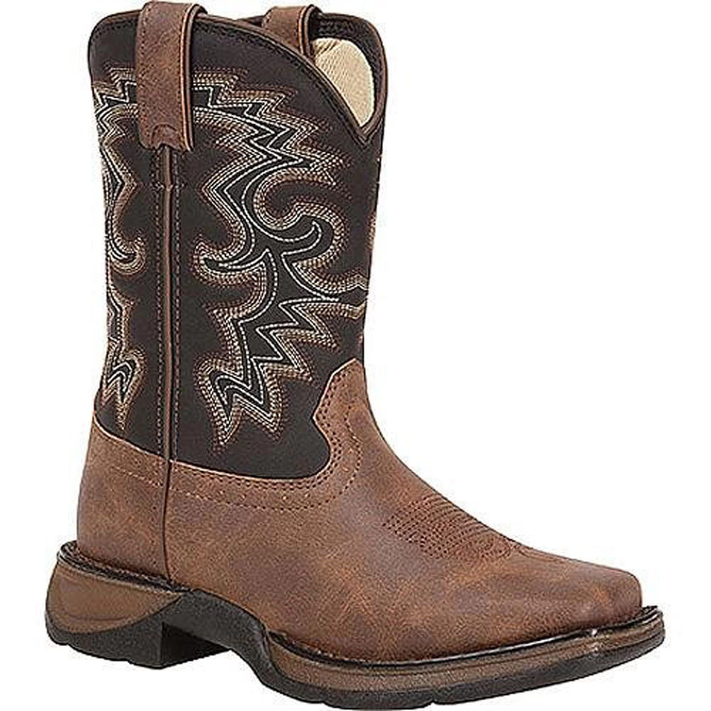 Brown Kids Cowboy Boot with Black Midnight Full Grain Man-Made Upper from Durango.