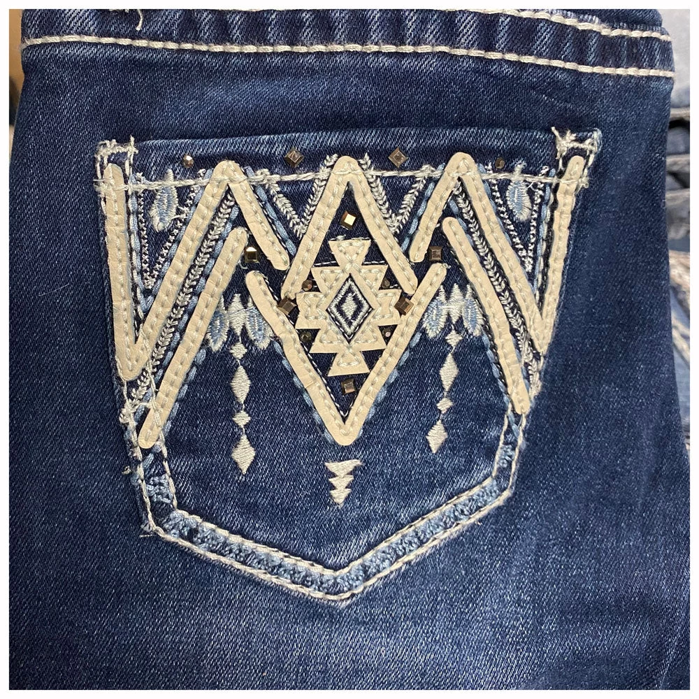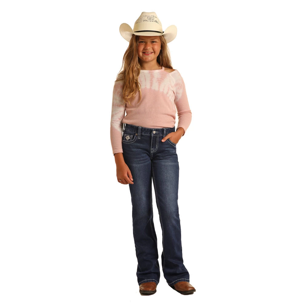 Rock & Roll Girls Boot Cut Jeans with Leather & Sparkle Pockets.