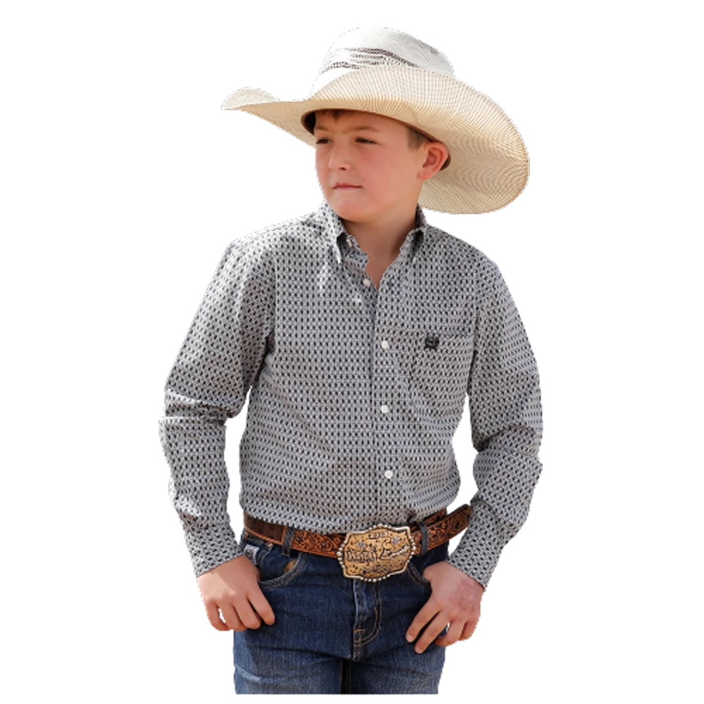 Cinch Boys’ Long Sleeve Buttondown Shirt in Grey Print