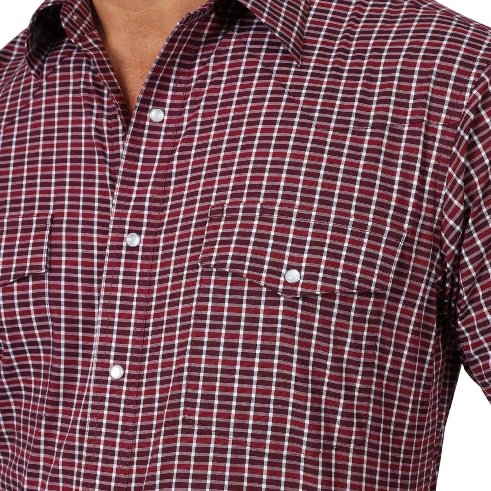 Have the sharp, crisp look you want without touching an iron. Easy care fabric in this men’s Western shirt from Wrangler is treated with a wrinkle resist finish to have your look fresh-pressed straight from the dryer.