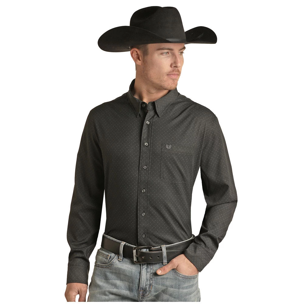 Panhandle Performance Men’s Long Sleeve Geo Print Western Shirt in Black