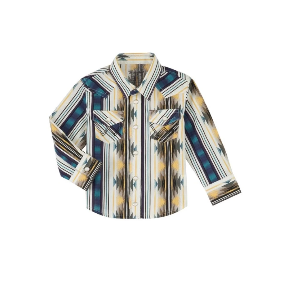 Blue Purple Tan and Yellow Long Sleeve Snap from Wrangler.