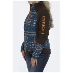 MAJ9858001 Cinch Women’s Bonded Conceal Carry Full Zip Jacket -Brown With Teal Southwest Print