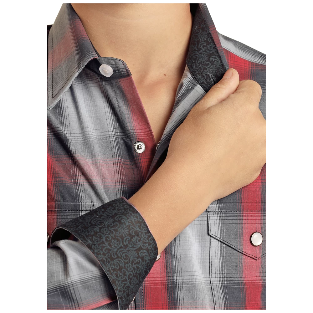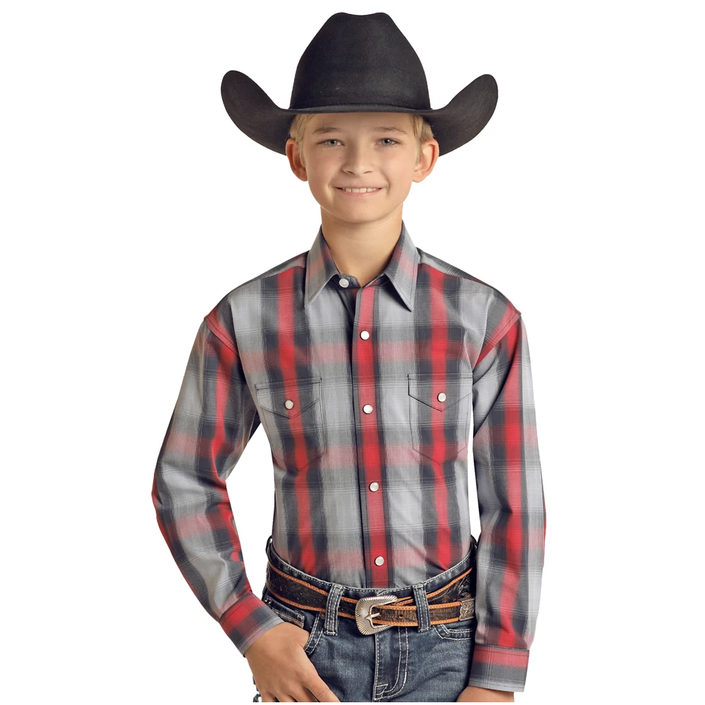 Panhandle Select Boy’s Long Sleeve Western Snap Shirt- Red & Blue Plaid