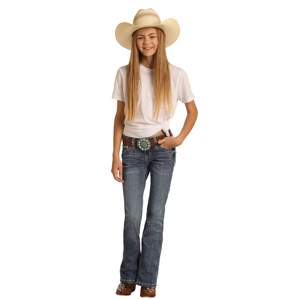 Rock And Roll Cowgirl Girl’s Boot Cut Jean With Heavy Stitched Pocket