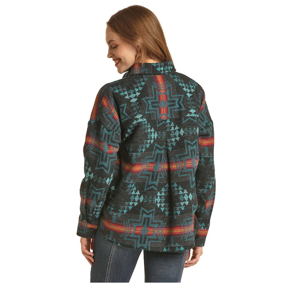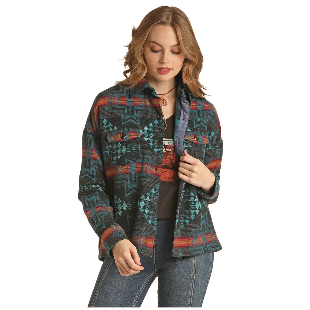 Rock & Roll Denim Women’s Shirt Jacket- Turquoise Southwestern Print