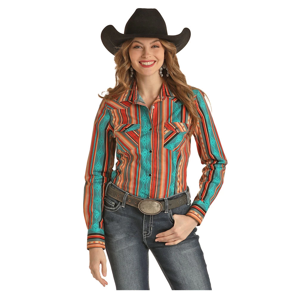 Rock & Roll Cowgirl Geo Stripe Western Snap Shirt – Caribbean