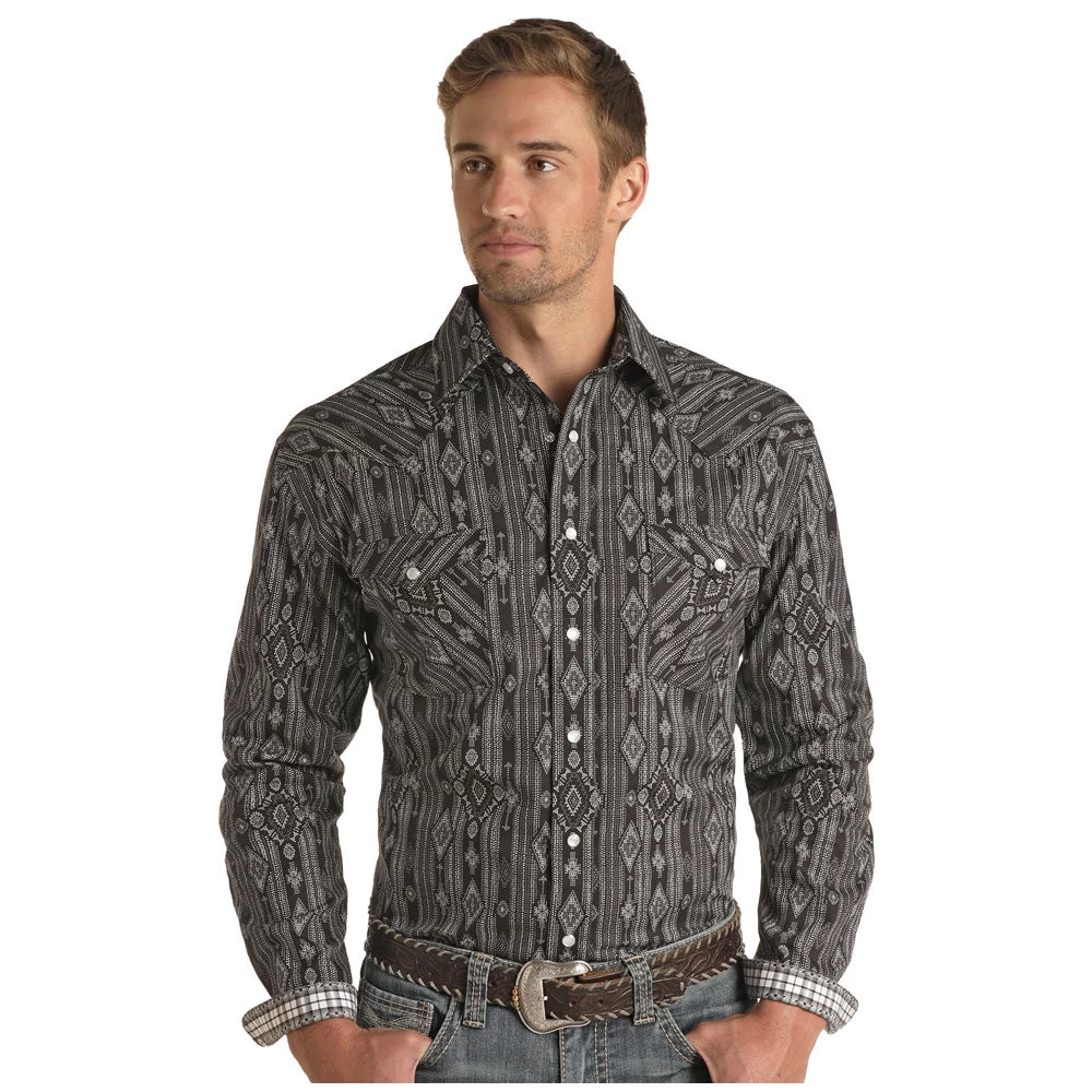 RSMSOSRZCY Panhandle Roughstock Men’s Long Sleeve Snap Shirt – Black