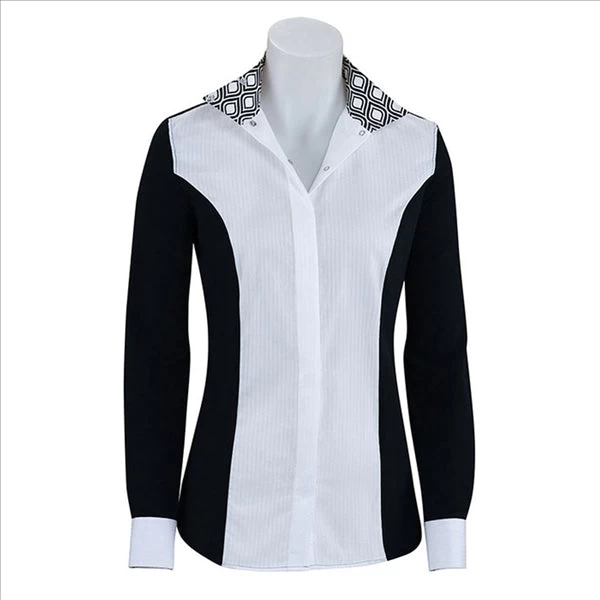 The RJ Classics Ladies Linden Black Show Shirt with Swirl Trim features luxurious wicking and stretch fabrics that keep riders cool and comfortable to ensure ultimate performance while never compromising style.